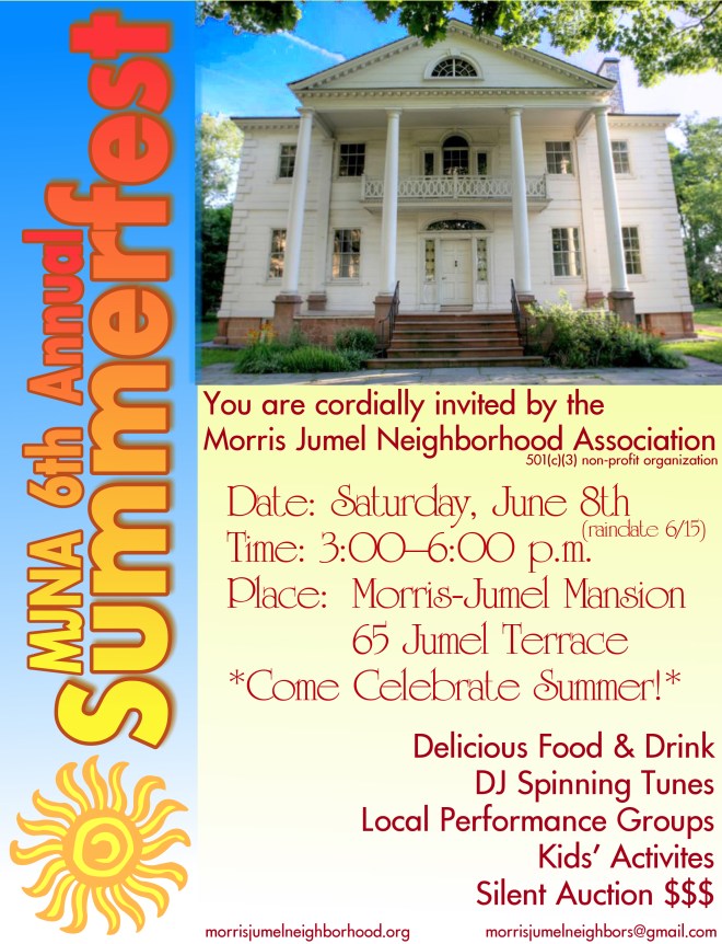 Join us on Saturday June 8th 2019 from 3pm -6pm on the lawn of the Morris Jumel Mansion for our annual neighborhood celebration SUMMER FEST!